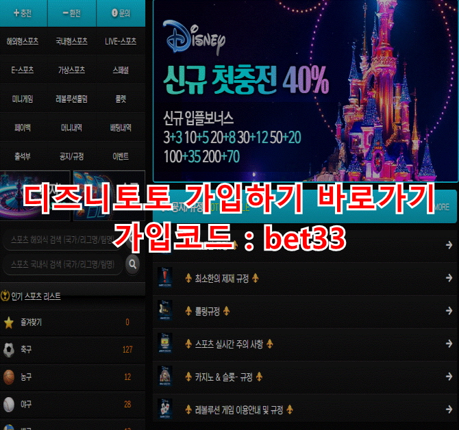 디즈니벳는 국내 최초로 이자 시스템을 도입한 사이트입니다.